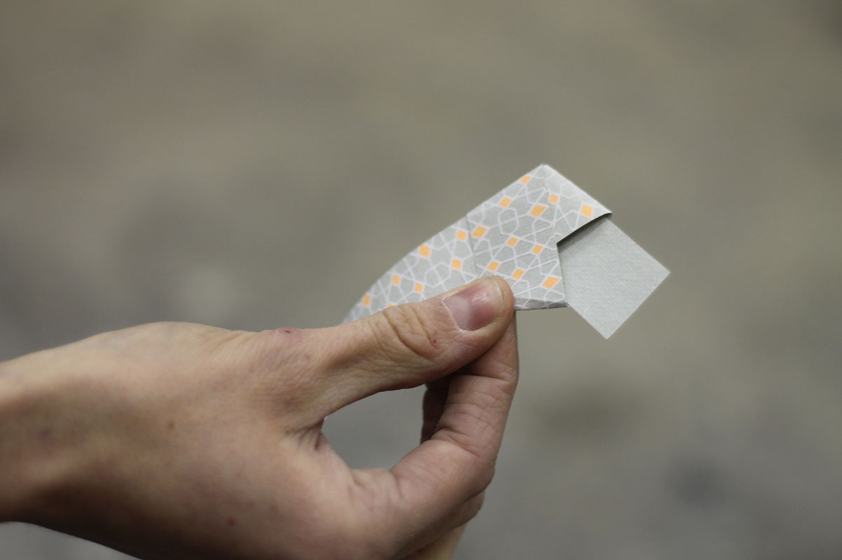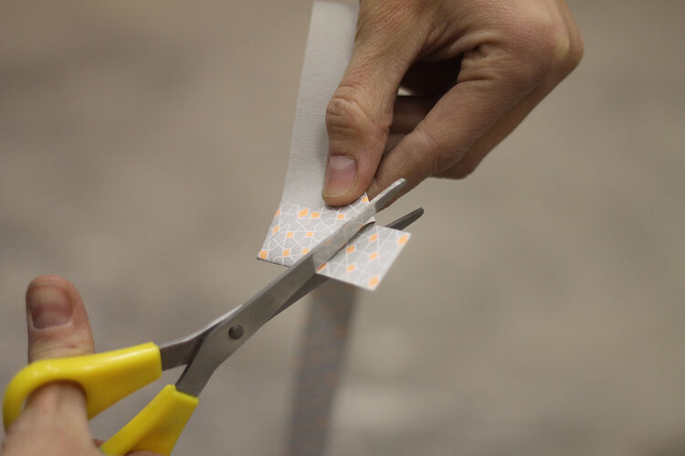 - Das letzte Stück schiebst du unter das Band und schneidest den Überstand ab.